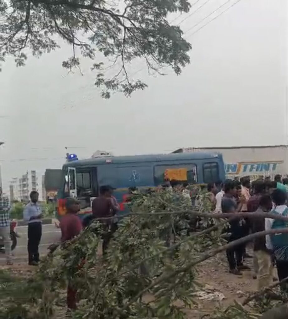 ✍🏻ఘటన జరిగినది రహదారి అవ్వడంతో వాహనములు అధికముగా నిలిచి పోయాయి…ఘటన స్థలానికి చేరుకున్న పోలీస్ సిబంది చాకచక్యముగా రహదారి యందు ప్రయానికులకు ఎటువంటీ అంతరాయం కలగకుండా చూసుకున్నారు……