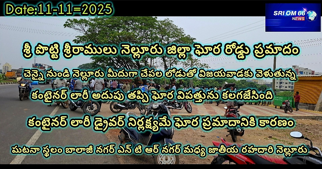 తేది:11-11-2025 మంగళవారము శ్రీ పొట్టి శ్రీరాములు నెల్లూరు జిల్లా జాతీయ రహదారిపై ఘోర రోడ్డు ప్రమాదం ఆరు మంది దుర్మరణం, నలుగురికి తీవ్రగాయాలు…