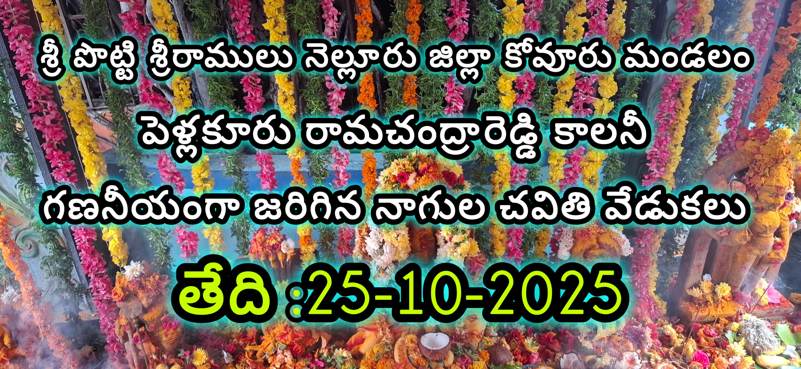 ✍🏻శ్రీ పొట్టి శ్రీరాములు నెల్లూరు జిల్లా కోవూరు మండలం పెళ్లకూరు రామచంద్ర రెడ్డి కాలనీ నందు 150 ఏళ్ల చరిత్ర కలిగిన నాగుల పుట్ట వద్ద గణనీయంగా జరిగిన నాగుల చవితి వేడుకలలో భక్తులతో నిండిపోయింది…..